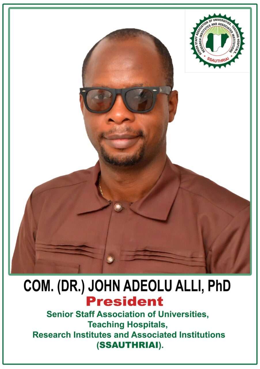 Abuja, Nigeria – In a landslide victory, Comrade Dr. John Adeolu Alli has been elected as the new National President of the Senior Staff Association of Universities Teaching Hospitals, Research Institutes & Associated Institutions (SSAUTHRIAI) at the just concluded National Delegates Conference.
