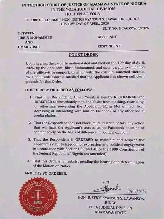 The bizarre dispute, centred on what many consider a routine online action, has since gone viral, triggering mixed reactions across the public space. While some view the ruling as an overreach of judicial intervention into personal digital choices, others argue it raises important questions about online relationships, access, and digital rights.