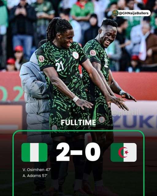 After a goalless first half in which Nigeria controlled proceedings without finding the breakthrough, Osimhen struck just two minutes after the restart. The former Napoli striker powered home a header in the 47th minute, rising above the Algerian defence to convert a pinpoint cross from Bruno Onyemaechi.