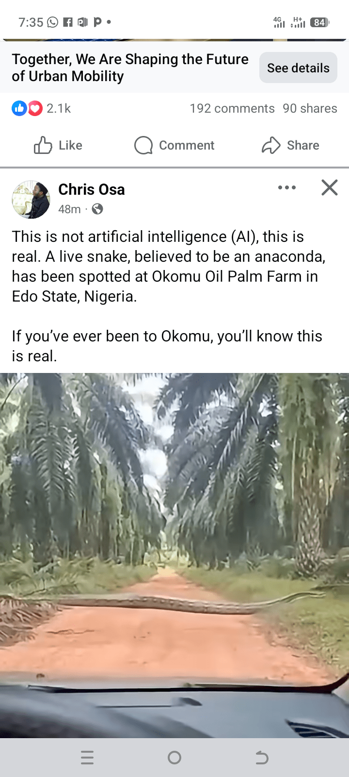 Dismissing claims that the footage was digitally manipulated, the publisher insisted the incident was real and urged sceptics to verify firsthand. “This is not artificial intelligence (AI), this is real. A live snake, believed to be an anaconda, has been spotted at Okomu Oil Palm Farm in Edo State, Nigeria,” he stated.
