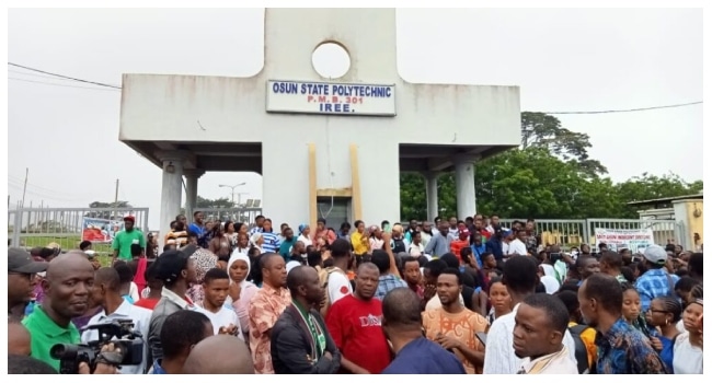 Academy Staff Union members of Osun State Polytechnic, Iree, staged a protest on Tuesday in response to the suspension of the institution’s Rector, Dr. Tajudeen Odetayo.