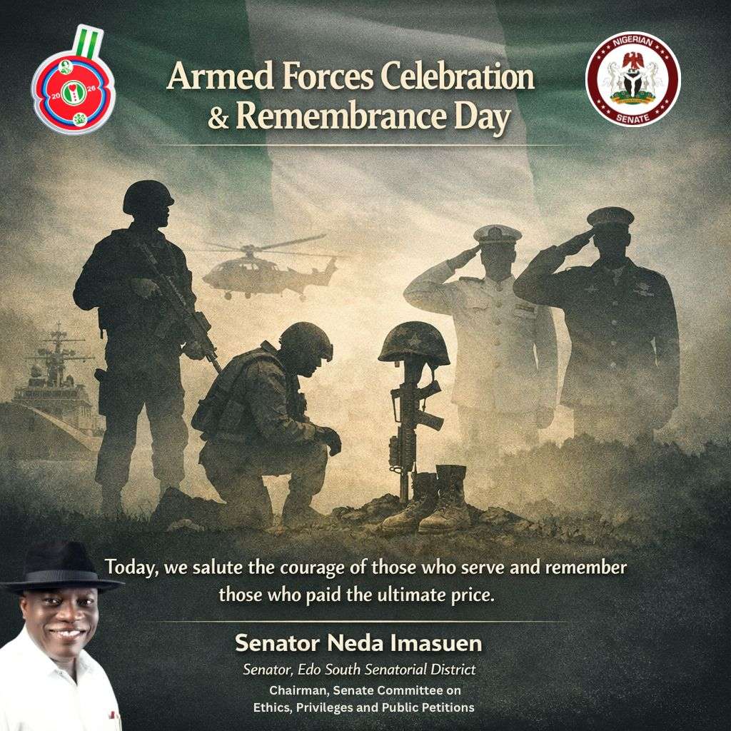 Senator Neda Imasuen has called for renewed national solidarity and stronger support for Nigeria’s Armed Forces as the country marked Armed Forces Remembrance Day, paying tribute to officers and soldiers who paid the ultimate price in defence of the nation.